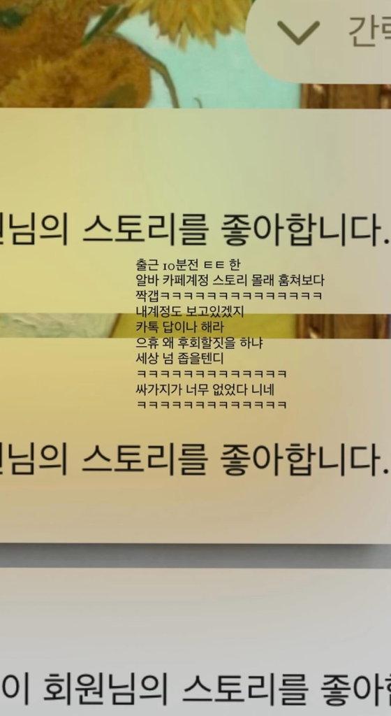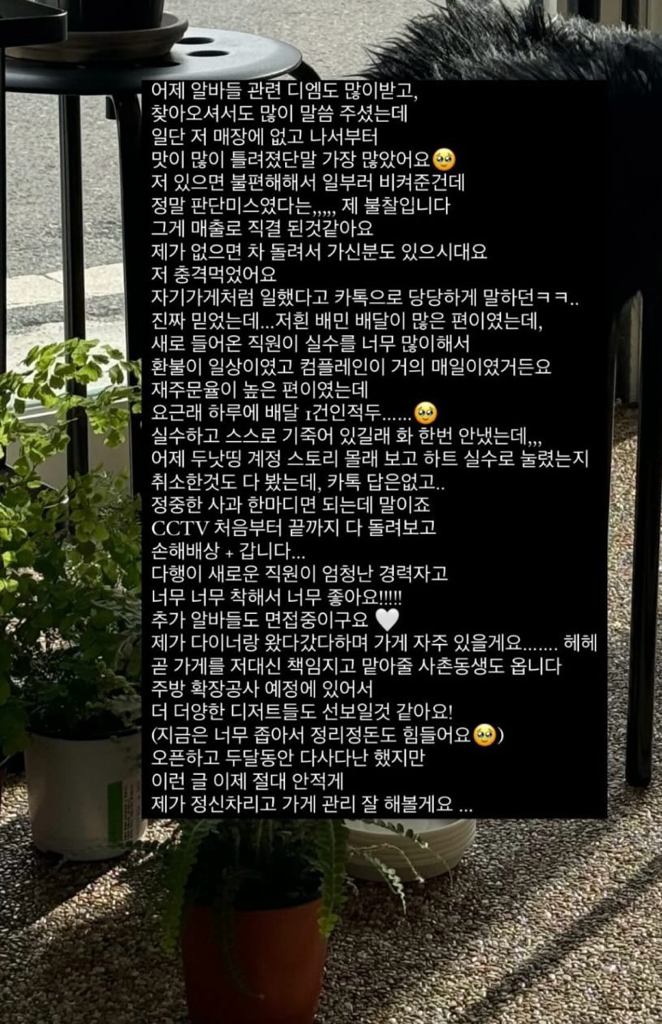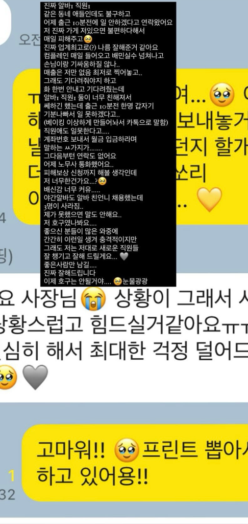 저격글을 적어두셨습니다 가게에 알바생은 저밖에 없었으며 직원도 한 명밖에 없는 상황이었습니다