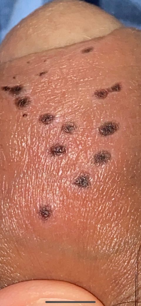 2주전 토요일에 성관계를 하고 3일 뒤 검은 점 여러개가 생기고 따가우며 간지럽습니다. 소변을 볼때 아프진 않고 딱 점이 생긴 부위만 너무 아픕니다