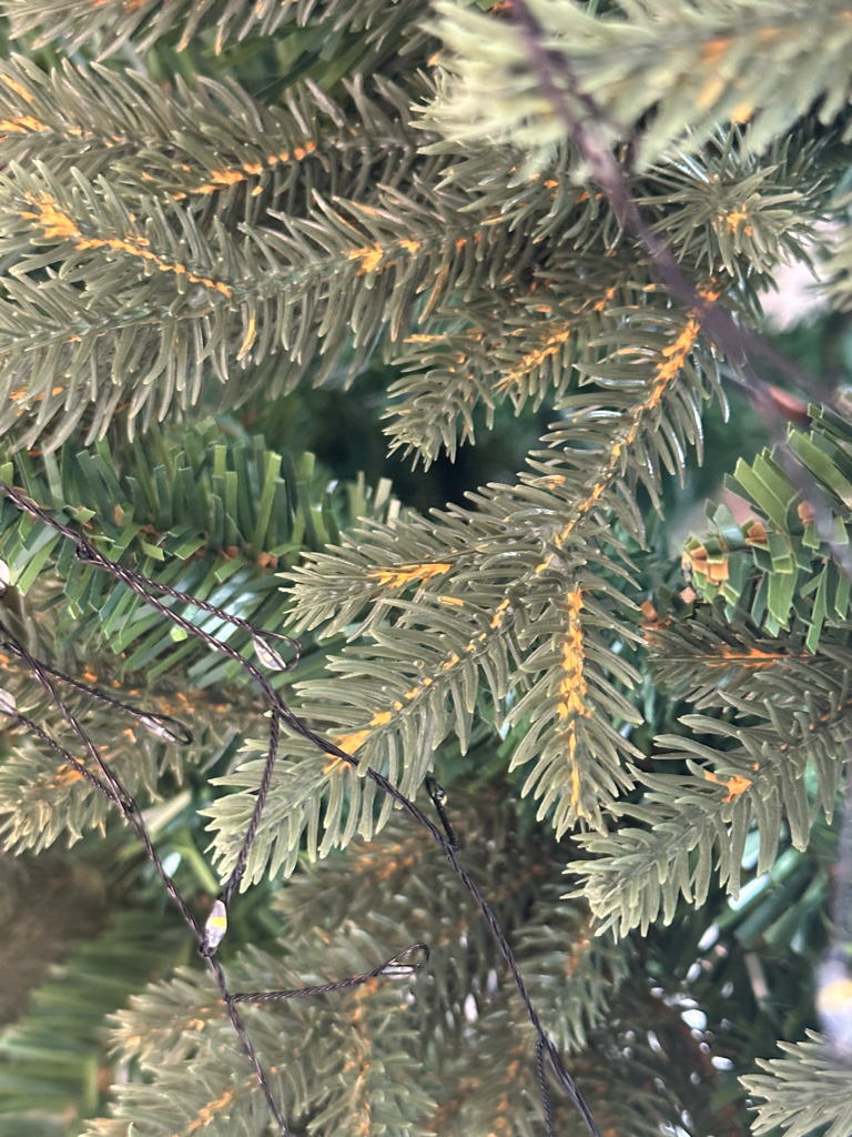 트리의 주황색 부분을 칼로 긁어내고, 긁어낸 부분을 냄새를 맡아 봅니다. 화학약품 냄새가 나면, 안료나 염료를 사용했을 가능성이 있습니다.