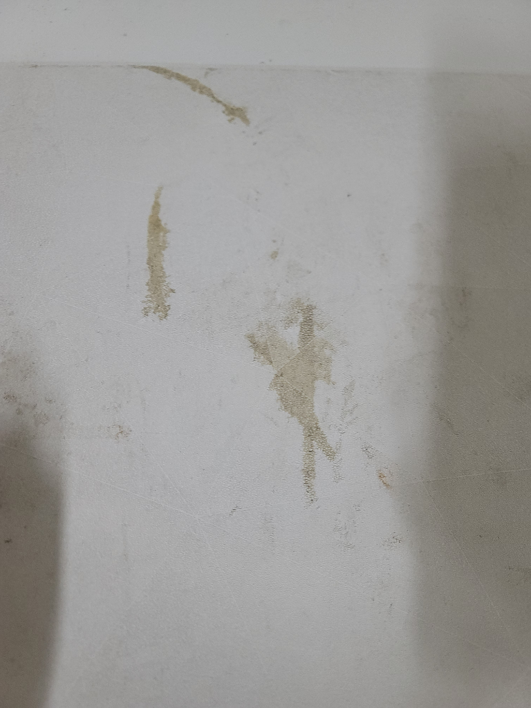 아무리 닦아도 김치냉장고 위에 얼룩이랄까 찌든때가 깨끗해 지지 않습니다
