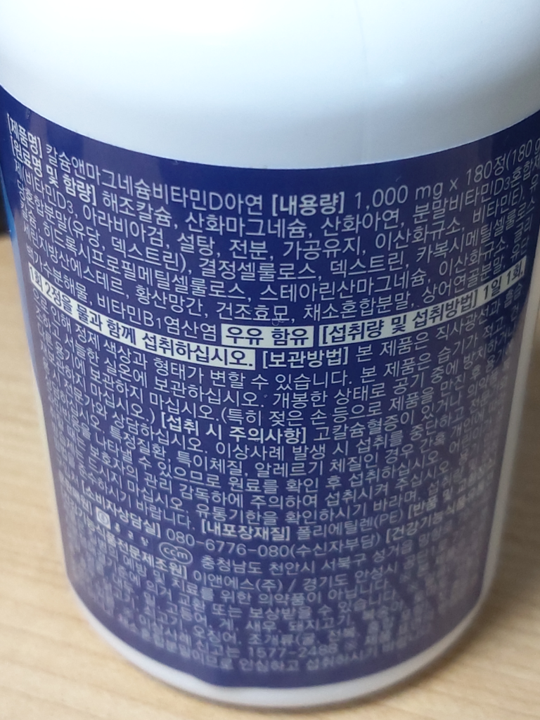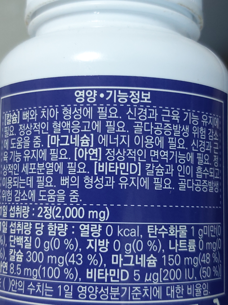 칼슘 300mg / 마그네슘 150mg / 비타민D 5mcg(200IU)