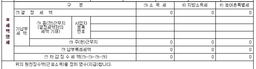 근로소득 결정세액이 (0)이고 매월 원천징수된 세액이 (0)인 경우 근로소득세
