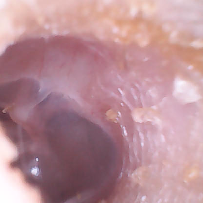양쪽 고막 모두 관찰되는 영역은 깨끗해보이는데, 초점이 잘 맞지 않은 사진이므로 아이가 귀를 아파한다면 진료를 받아보셔야 하겠습니다. 다만 증상이 호전되었으니 기다려보실만한 상황이라 보입니다.