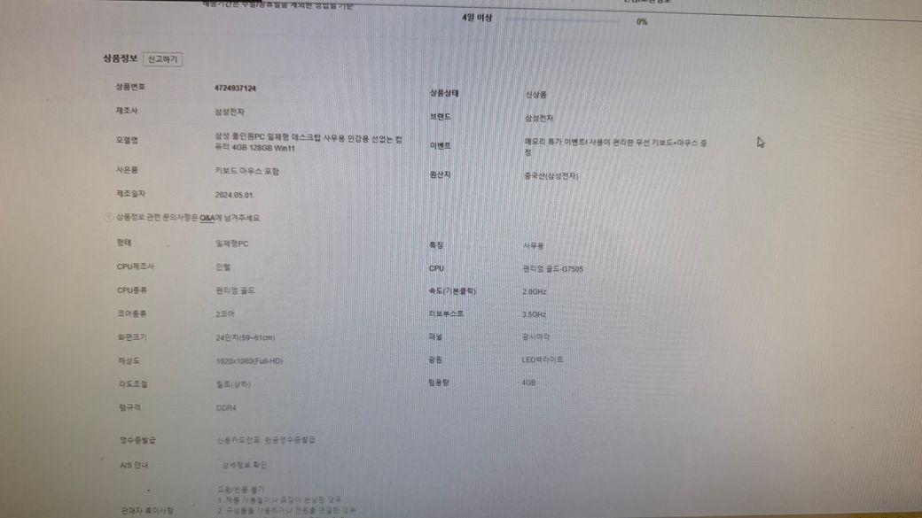 위 사진으로 판단하기에는 전체적인 성능을 볼 수가 없지만 일단 CPU만으로 판단했을 때는 올인원 PC가 실질적인 성능차는 크지 않아도 그래도 최신기술이 들어가 있기에 기능적인 부분을 생각하면 조금은 더 좋을거 같다는 생각이 듭니다. 그렇지만 메모리가 4GB라는점이 좀 아쉽습니다.