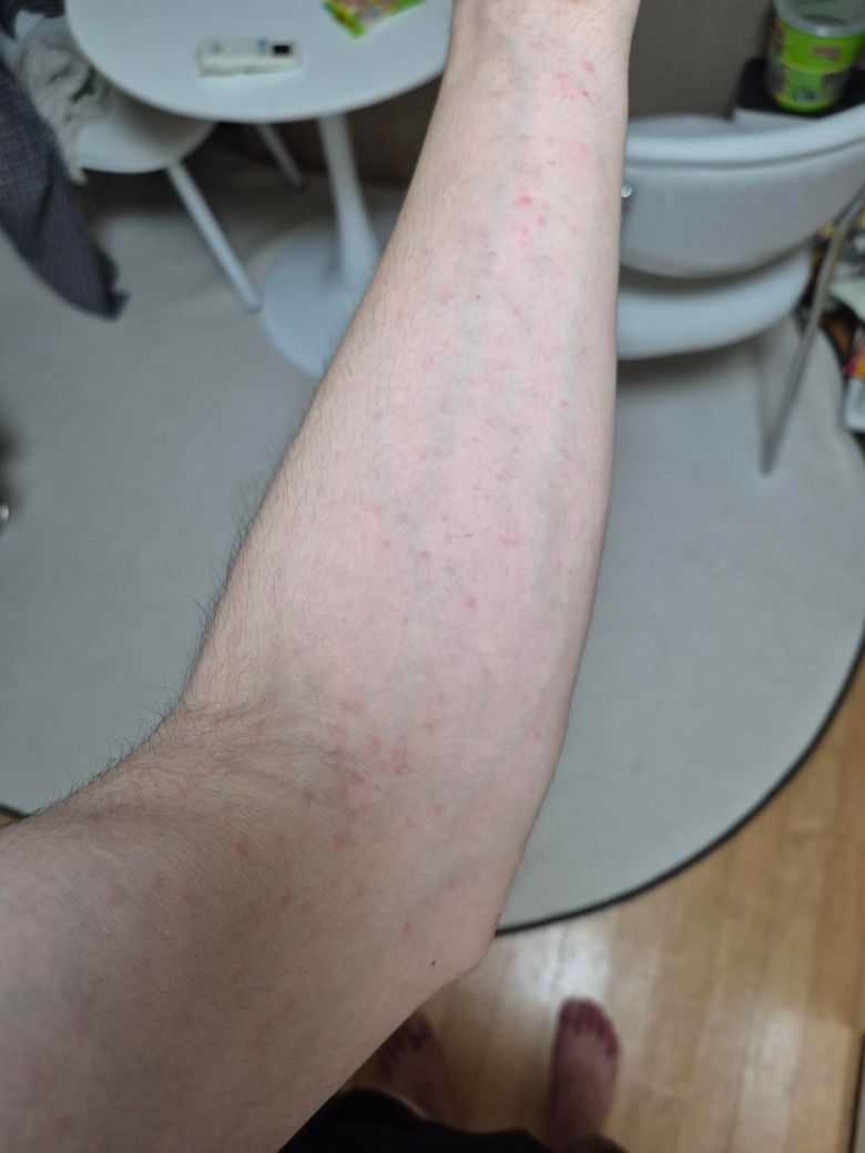 30살인데 그동안 견과류 먹고 이런적이 없었는데 장염 1주일 앓고 장염약 먹는중인데 약때문은 아니라하고 의심되는게 어제 운동하고 낮에 호두과자 먹은거뿐인데 저녁에 씻을때보니까 상반신에만 전체에 빨간반점이 다닥다닥생겼어요 가렵진않고 만져지지도 않는데 왜이럴까요..