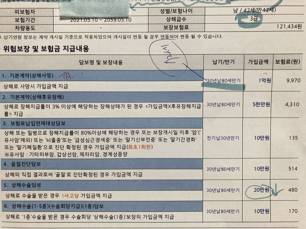 3. 사망에 대한거는 저 보험 상해사망1억 밖에 없는데. 괜찮은가요 ?