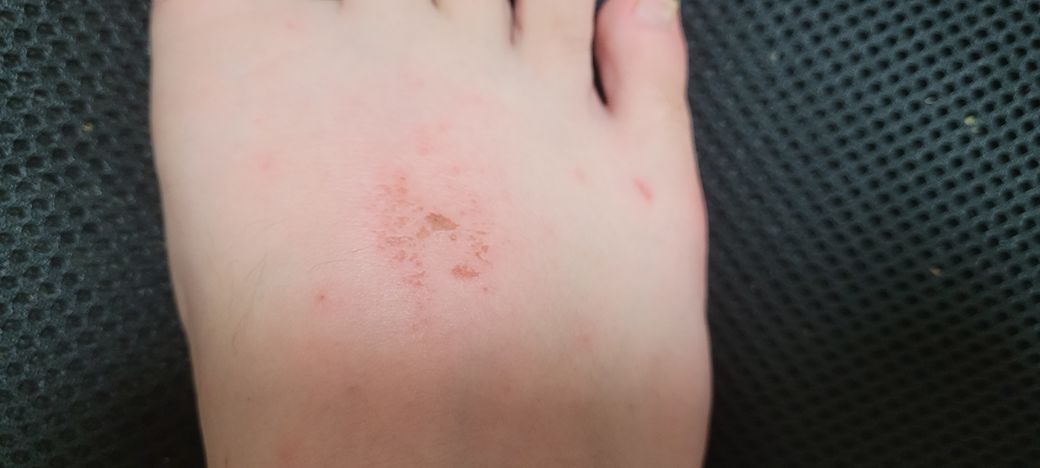 모기 물린 부분인지는 모르겠는데요 간지러워서 긁었는데 상태가 저렇게 되고 걸을때 발등이 땡김 현재는 어디 다으면 따금 거리네요 이렇게 된 지는 하루 정도 되었어요 어떻게 해야 될까요 어제 한번 알콜솜으로 닦았습니다