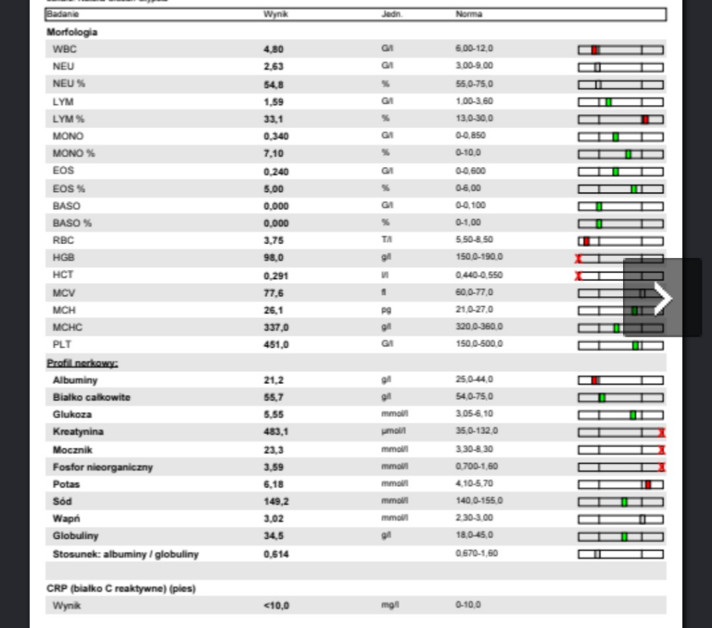 해당 국가의 언어로 작성되어 있고 어느나라 말인지도 모를 정도이니 판단할 수 없고, 해석하는것은 임상병리라는 과목을 전부 가르쳐 달라는것이기에 현실적이지 않습니다. 구글 번역기든 AI 번역기를 이용하여 주치의와 대화를 진솔하게 하셔야 할듯 합니다.