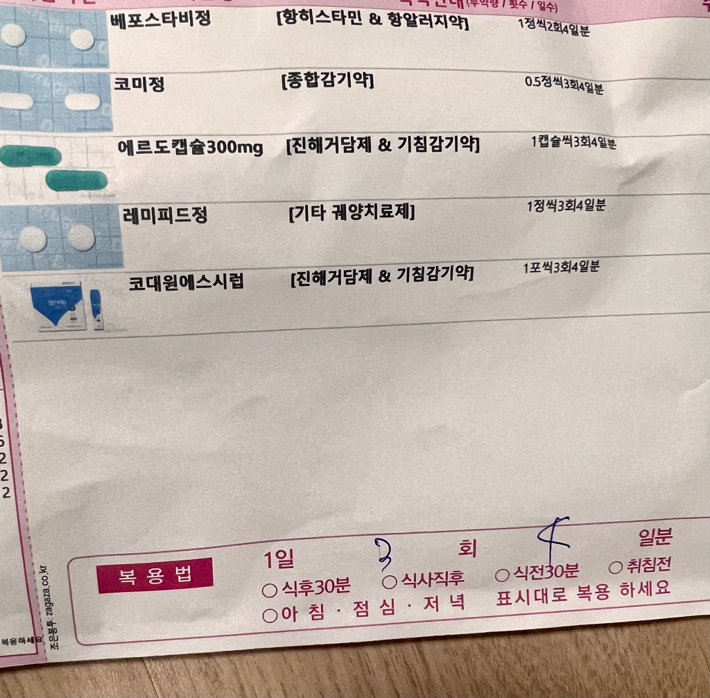 베포스타비정 / 코미정 / 에르도캡슐 / 레미피드정 / 코대원에스시럽을