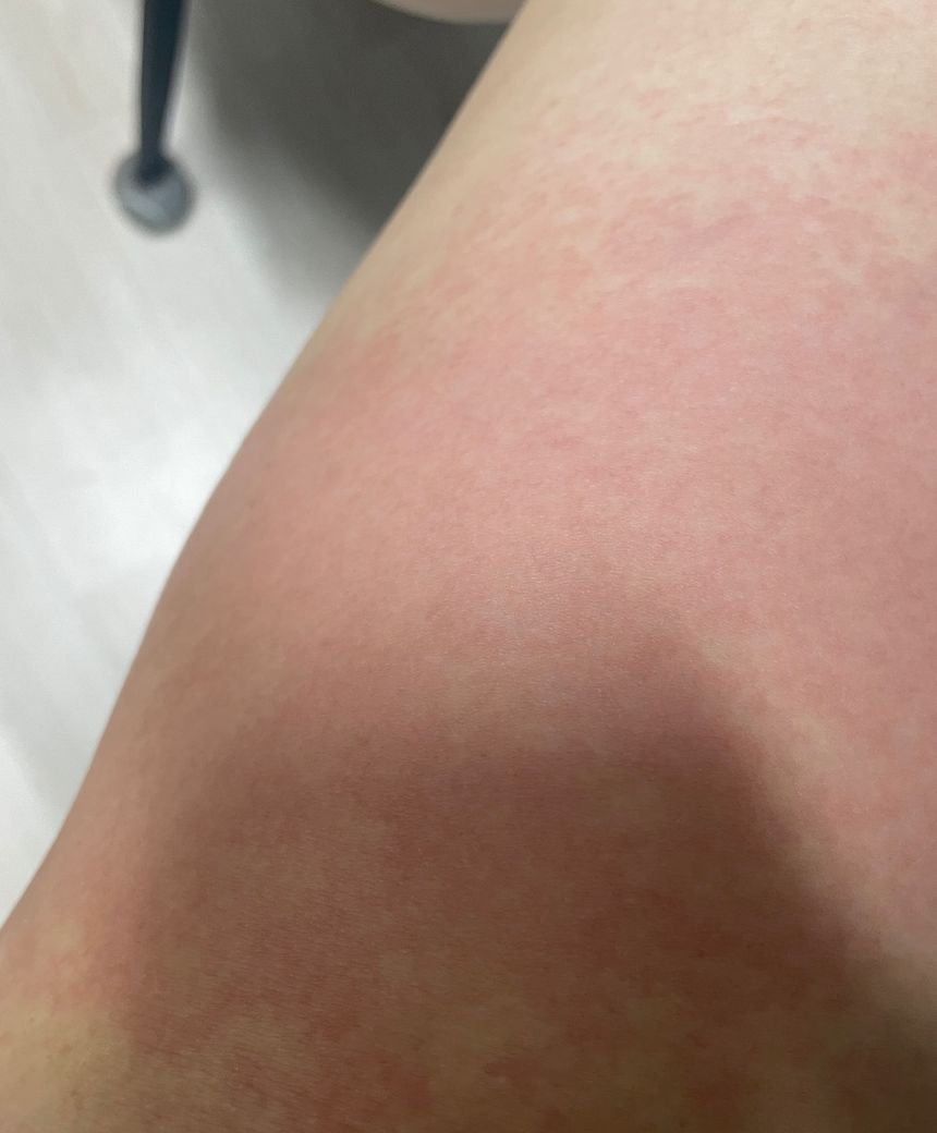 아프거나 가렵거나 하는 건 없는데 한쪽 허벅지만 유독 이래요. 붉게 퍼져있는데 며칠전보다 더 넓어진 느낌이에요.. 무슨 증상일까요?