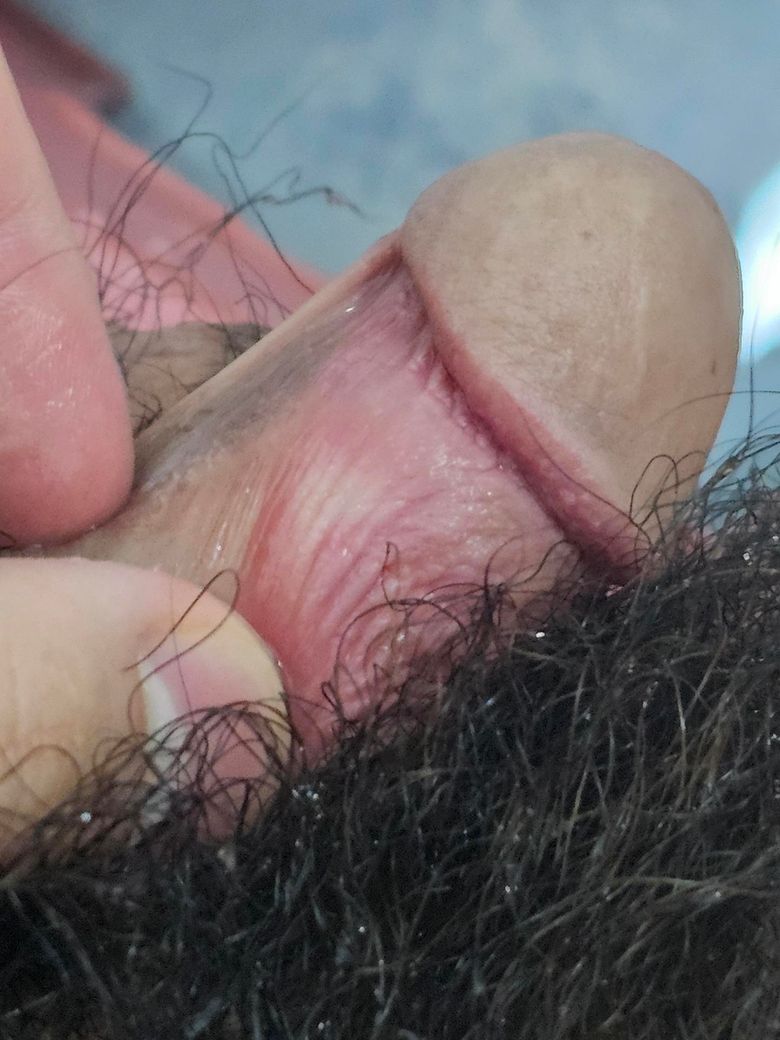 사진상으로는 귀두와 포피 안쪽 점막이 균일하게 붉고 약간 습윤한 상태이며, 흰색으로 보이는 부분은 궤양이나 고름보다는 마찰 후 상피가 불려 보이는 양상에 가깝습니다. 전형적인 성병 병변(수포, 깊은 궤양, 군집된 물집, 뚜렷한 사마귀 모양)은 보이지 않습니다.