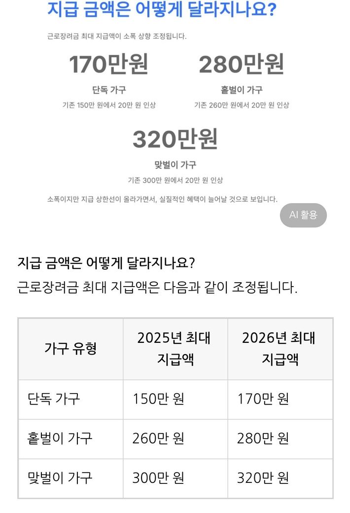 내년 2026년 근로장려금 170 만원되나요.