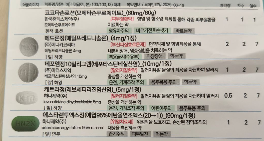 두드러기 때문에 치료 받고 약 처방 받았는데요?