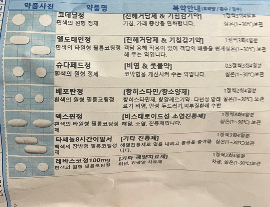 증상이 심하지 않은것에 비해서는 약을 상당히 많이 받으셨네요..