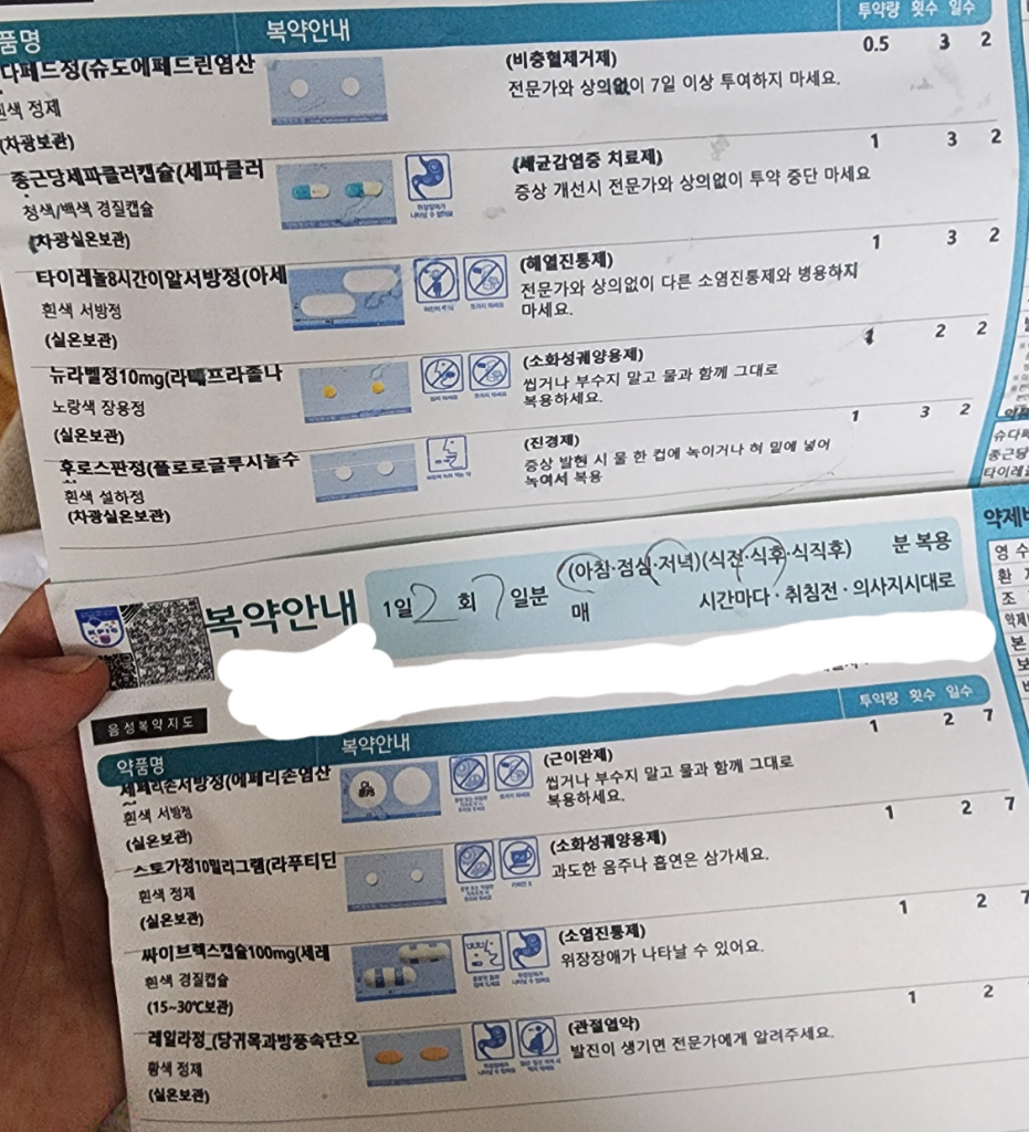 꼭 같이 드실필요가 없다면 감기약 다 드시고 이틀뒤부터 정형외과 약을 복용하시는 것도 괜찮습니다