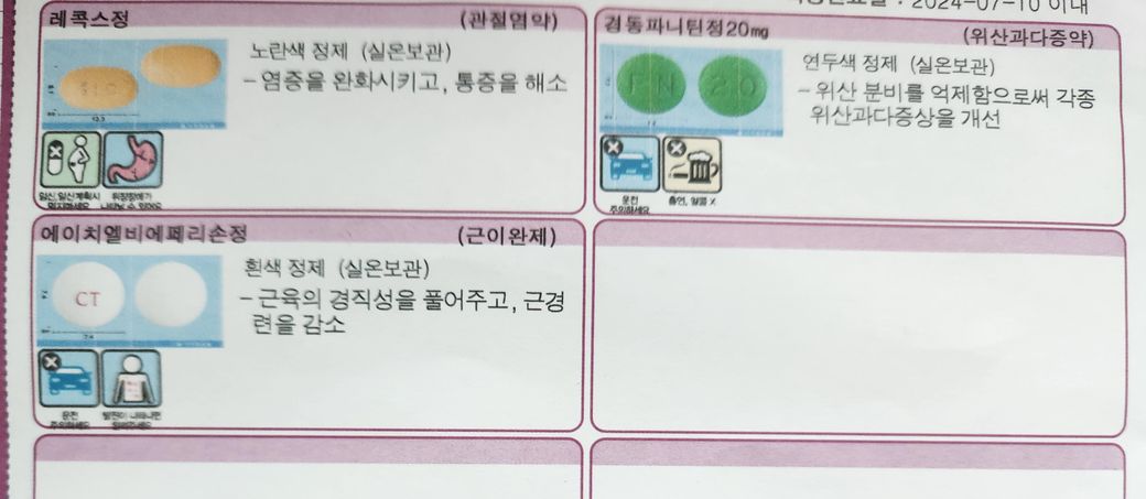 레콕스정,에치엘비에페리손정,경동파니틴정20mg 을 복용중인데