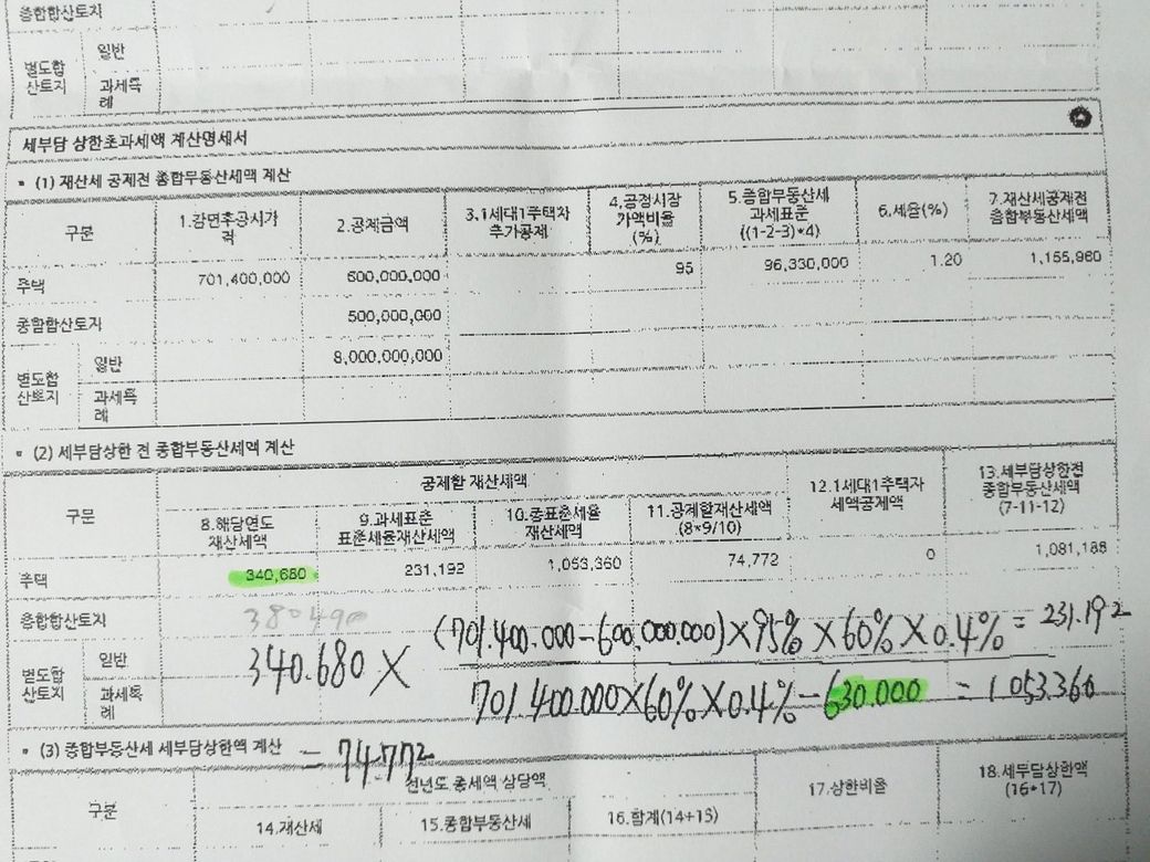 총표준세율 재산세액에서 공제된 (-630,000)원이 어떻게 나왔는지