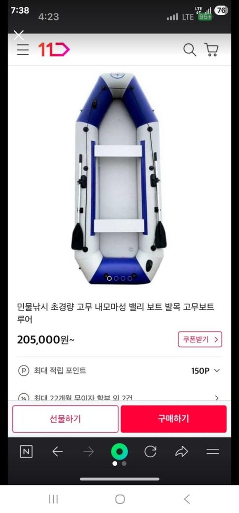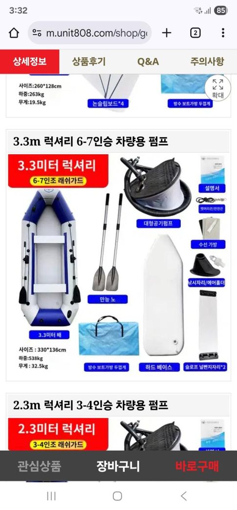 상대방이 올린 판매사진은 3.3m 럭셔리형이네요. 근데 또 판매 설명란에는 1.75m라고 써져있습니다.
