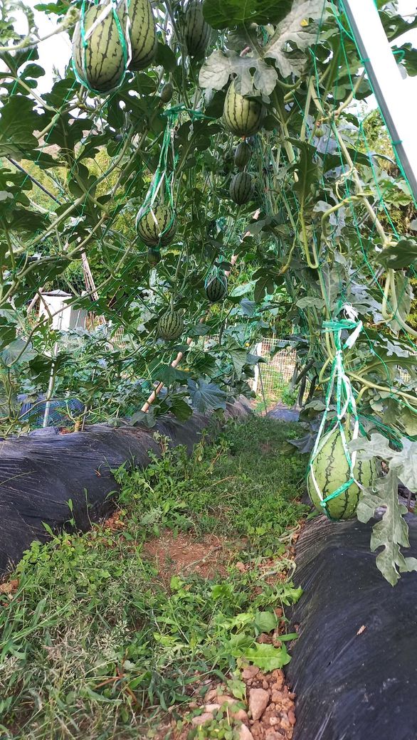 첨부 사진과 같이 올해 텃밭에 애플수박을 심었더니 제법 수박이 많이 달렸습니다.
