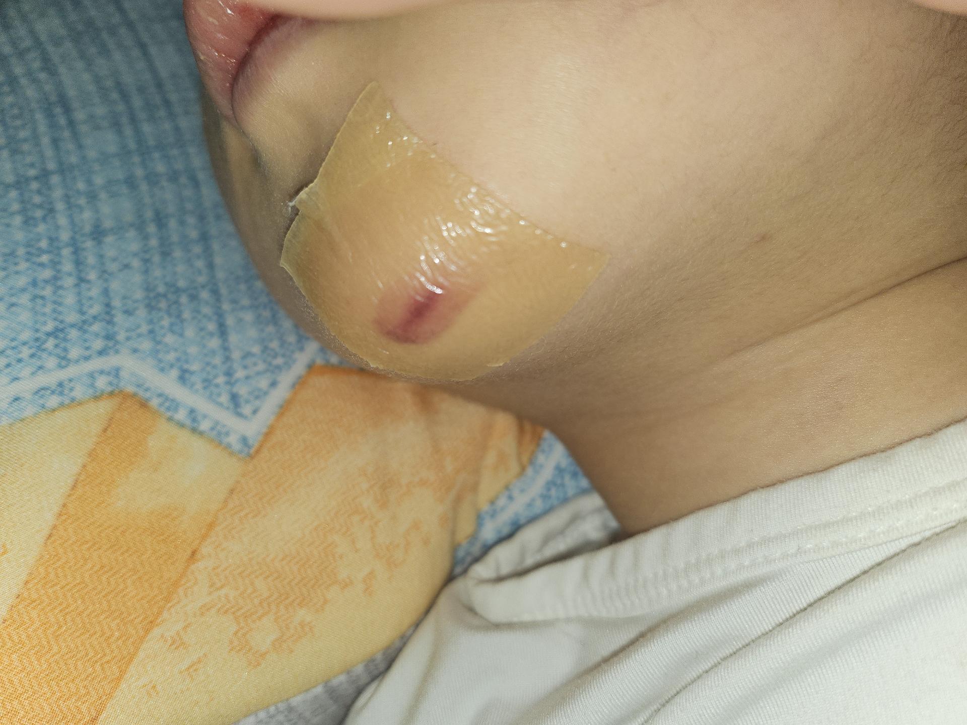 다만 상처가 패여 벌어져 보이거나, 아이가 움직일 때 상처 가장자리가 계속 벌어지는 경우, 피하 지방이 보일 정도로 깊어 보이면 미용적 흉터를 줄이기 위해 봉합이나 피부접착제가 필요할 수 있습니다. 턱 부위는 움직임이 많아 자연 치유 시 흉터가 남는 경우가 상대적으로 잦습니다.