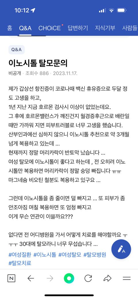 검색해보니 이노시톨 먹고 머리가 빠진다는 사람이 있어서요.
