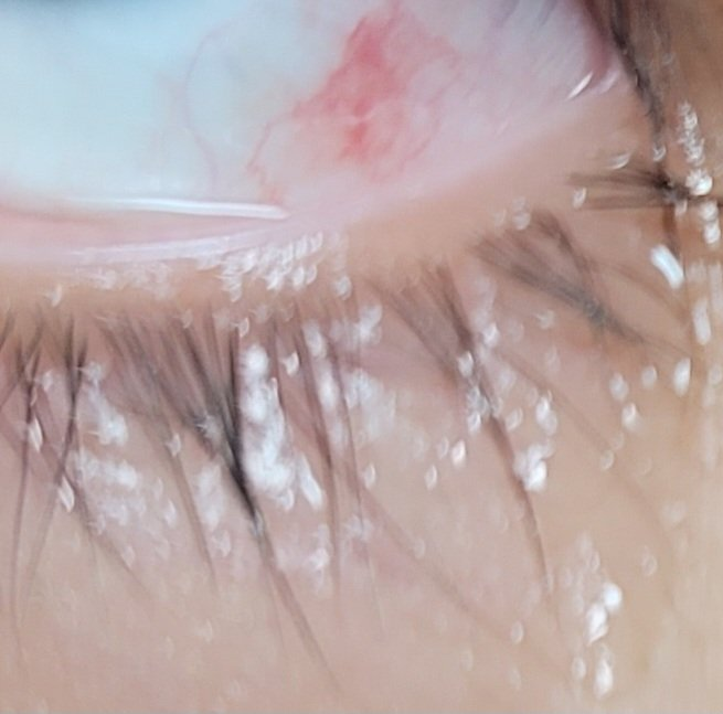 사진의 소견만으로 정확한 감별 진단이 가능하지는 않지만 익상편이 발생한 것이 아닐까 싶습니다. 급하게 무언가를 하셔야 하는 것은 아니기 때문에 급하게 약물을 사실 필요는 없어 보이나 인공눈물을 점안해주어 안구 불편감을 해소해주는 것이 도움이 될 수는 있겠습니다. 그보다는 주말이 지나고 안과 진료를 받아보시길 권고드립니다.
