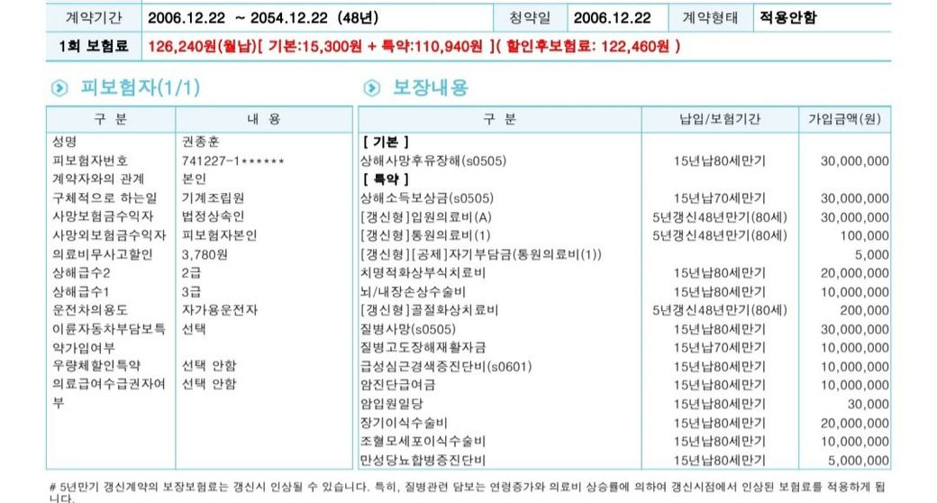 - 주계약이 아닌 특약은 보험기간중 언제든지 해지가가능하면 환급금이 발생됩니다.
