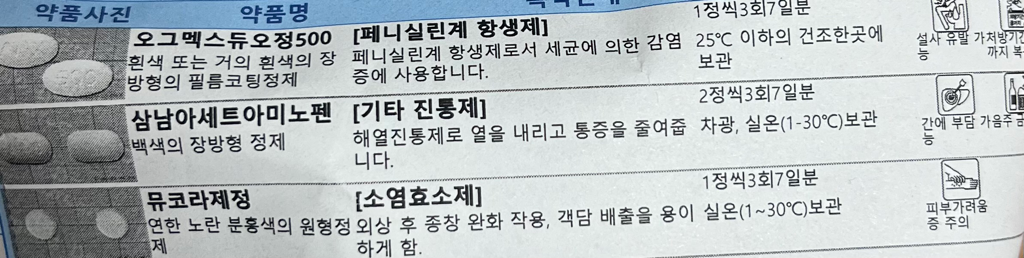 타이레놀이랑 삼남아세트아미노펜이랑 같은 약이어서 처방받은 약을 먹어도 안좋으면 타이레놀을 1알 같이 먹을 수 있어요.