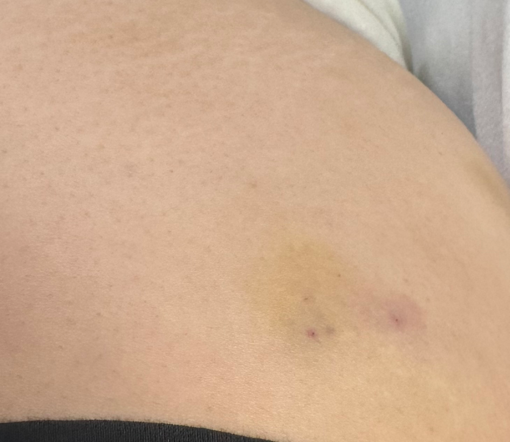 주사맞은 부위가 멍들어서 고생스러우시겠습니다.
