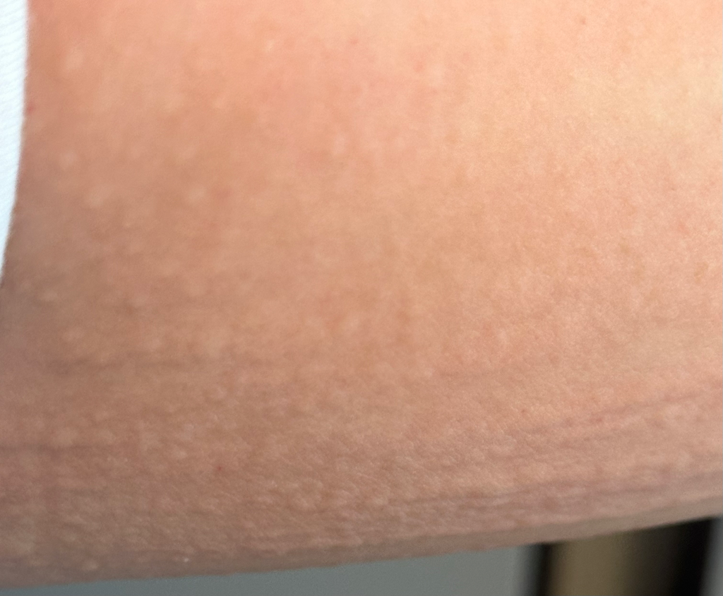 피부묘기증은 단순히 피부의 부종과 발적만 나타나는 단순 피부묘기증과 발진 부위에 가려움을 동반하는 증상성 피부묘기증으로 나눌 수 있습니다.