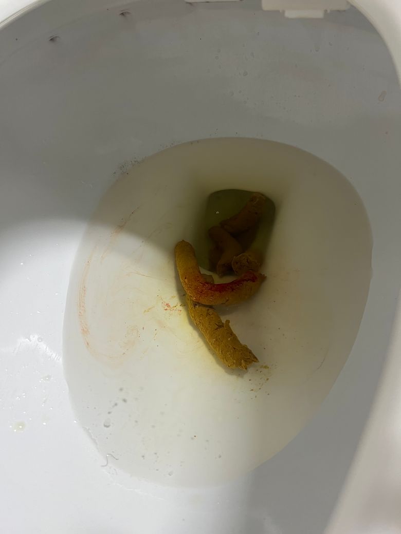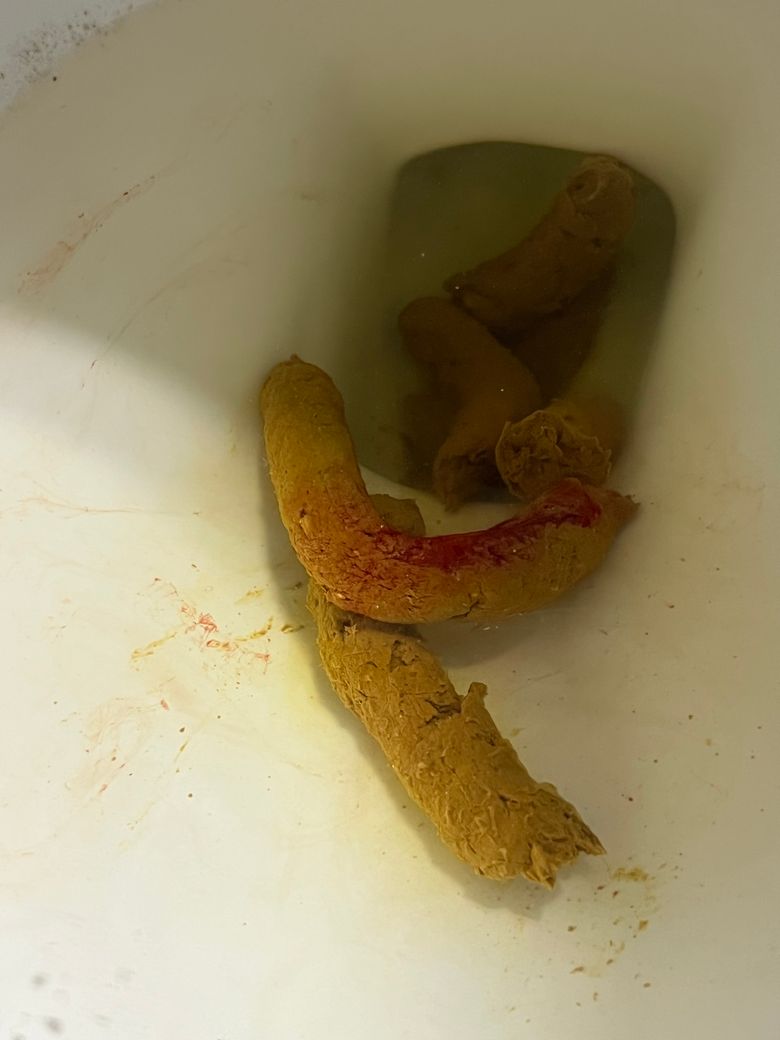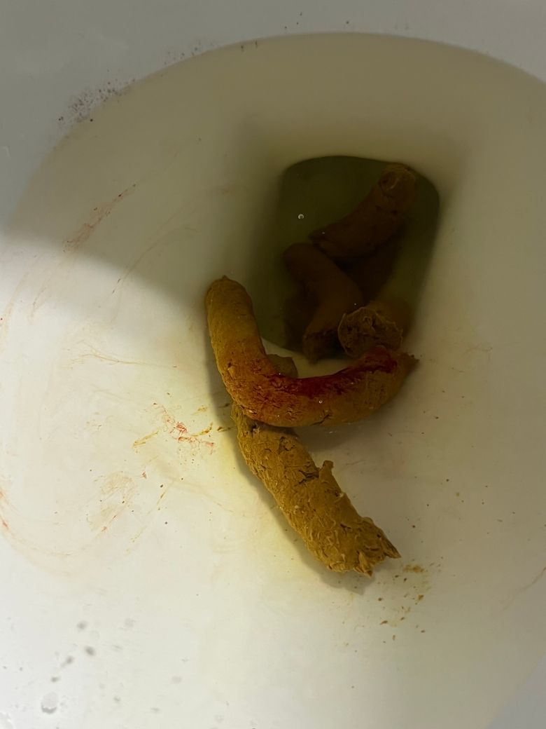 두번 째 혈변 땐 변기물은 비교적 투명했지만 변에 피가 섞인듯한 모습이었습니다.