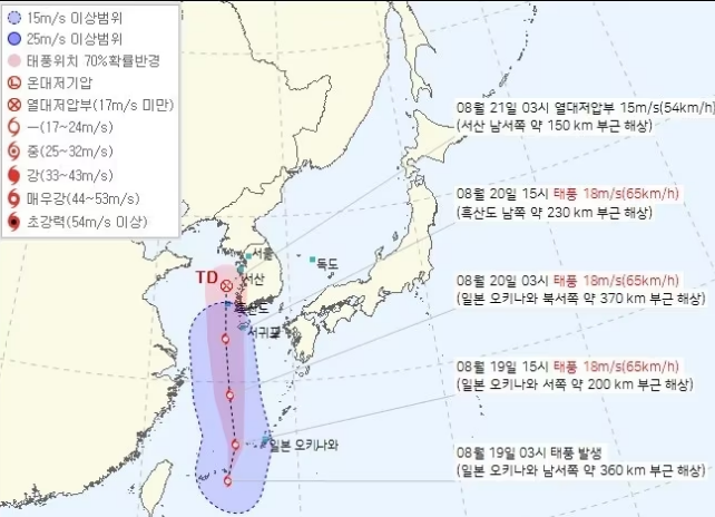 아나 내일 20일에 태풍 영향권에 들어올 것으로 보여집니다.