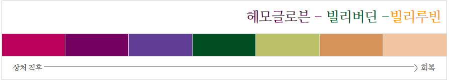 멍이라는게 출혈이 일어나서 헤모글로빈의 색이 점점 변화는 과정임으로 아래 그림과 같은 색변화를 보일 수 있습니다.