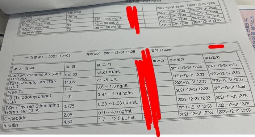 2. 갑상선항진증 기저질환으로 인한 어쩔 수 없는 수치 이상 외에는 수치들이 전부 양호합니다.