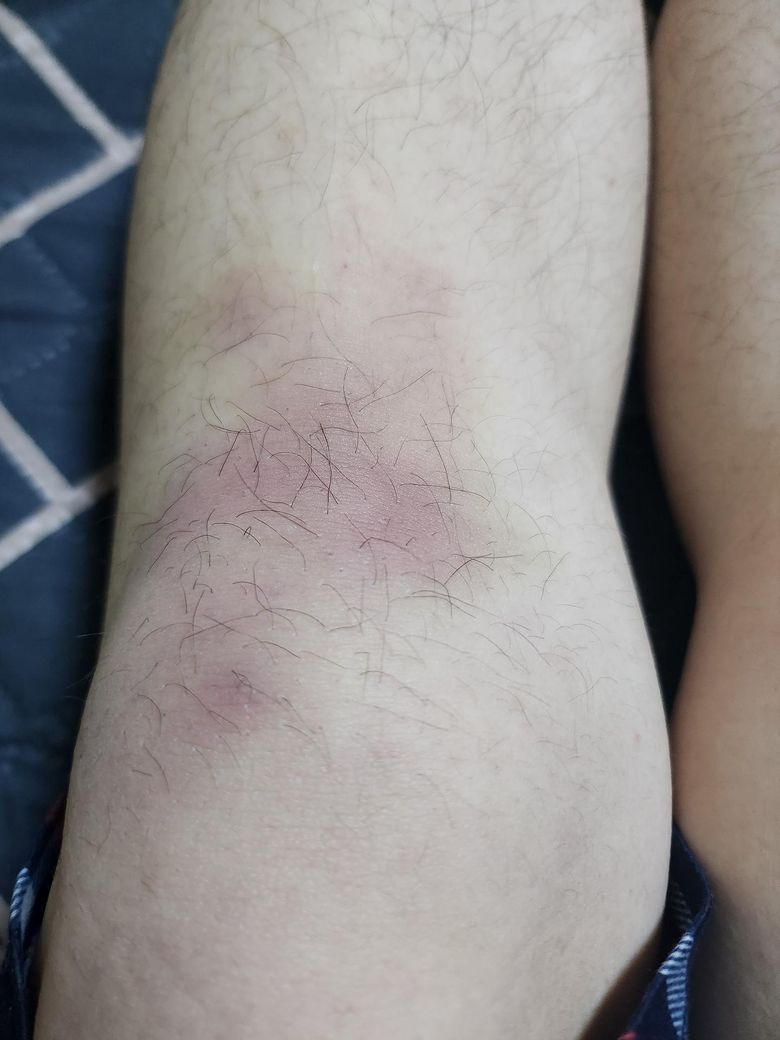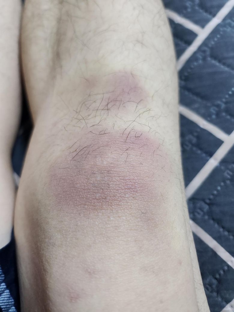 양 다리다 이 상태인데요 아픈지 좀지나서 지금은 아프지는 않습니다 어딘가 박지않았는데 이렇게 멍이 심하게 날수있나여? 그리고 처음에는 정말아팠어요