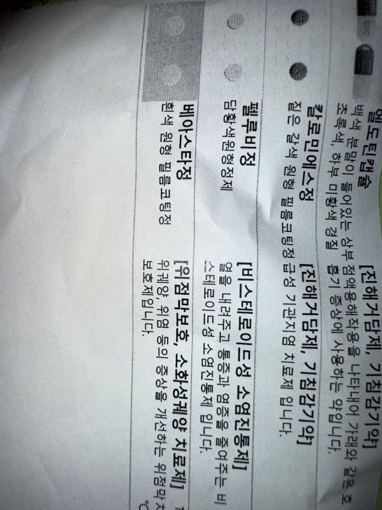 감기약( 엘도틴캡슐, 칼로민에스정, 펠루비정, 베아스타정) 과 같이 복용해도 되나요???