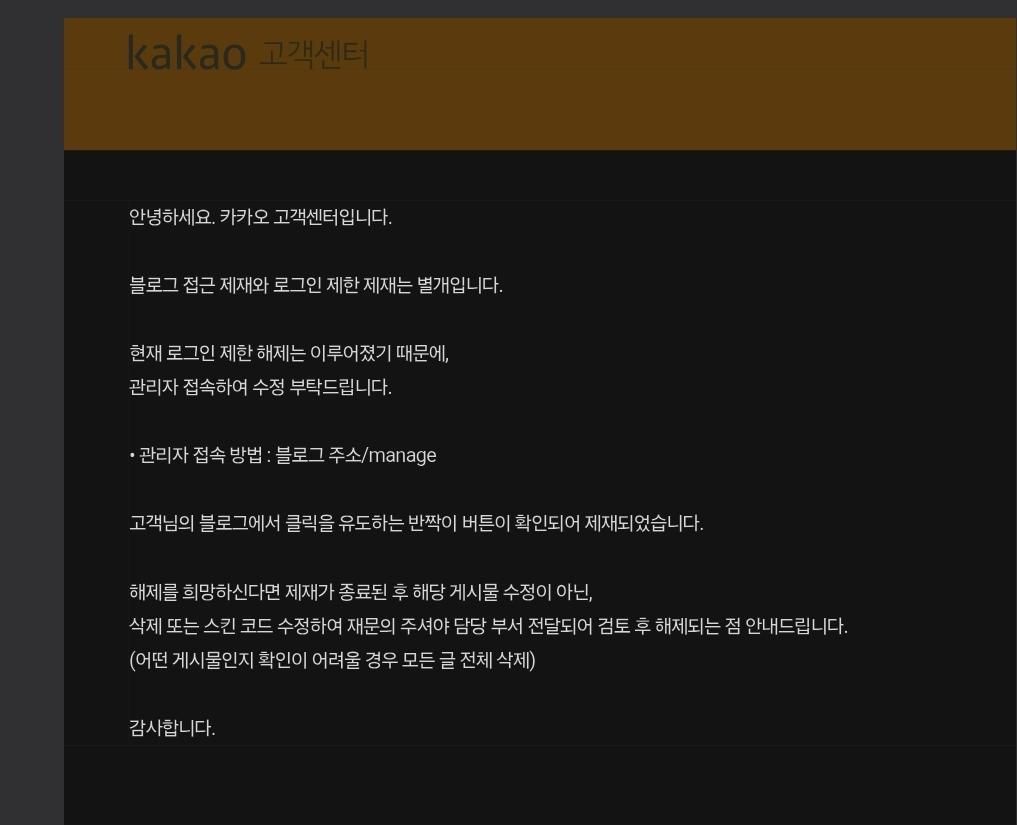 어떤 글인지 확인 안되는데 어떻게 수정하라는건지..관리에 들어가서 쓴글을 확인하고 지우든 수정을 해야될거 같은데 글을 못 봐요.