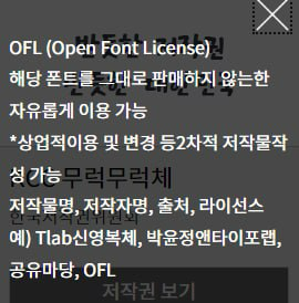 위의 경우 해당 부분이 사선으로 되어 있는 점(삭제 된 점)에서 폰트 파일을 임의로 사용하기는 어렵다고 보여집니다. 출처를 반드시 밝혀야만 합니다.