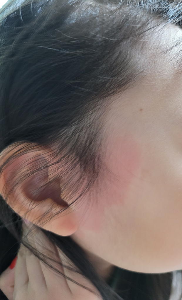 병변 크기 및 위치를 봤을때 베게 등에 눌리면서 접촉성 피부염 등의 가능성이 있겠습니다.