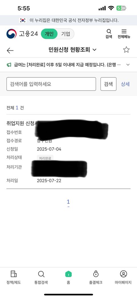 국민취업제도 1유형 이거 신청 통과된 거 맞나요