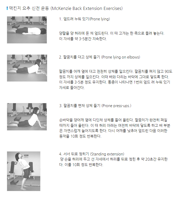 윌리엄스 운동(굽히는 운동)은 오히려 좋지 않은 것으로 알려져 있습니다.