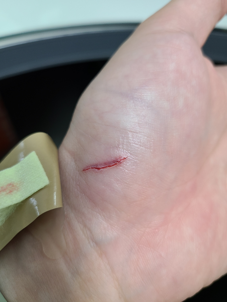 상처가 깊지는 않으니 연고 바르고 상처 감염을 주의하시면 되겠습니다. 손을 깨끗하게 씻고 완전히 건조시킨 뒤 연고, 밴드를 붙이시면 되겠고 매일 두 번 정도 새로 교체해주시기 바랍니다.