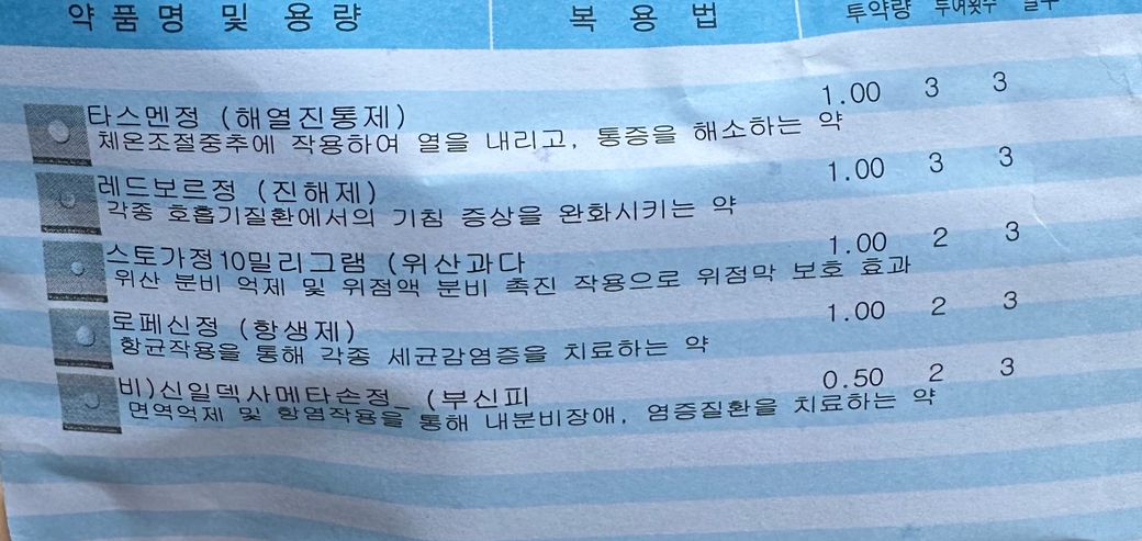 근데 약이 좀 바뀌었나 싶고 진통제 계열이 너무 많은 거 같아서….