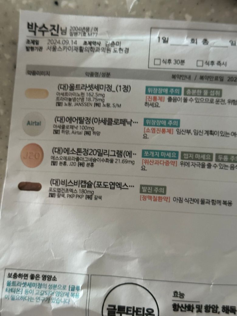 저번 진료 때는 약 사진 같이 보여드리며 같이 먹어도 되냐 물었는데 이번 진료 때는 약 성분을 다시 보여드리지는 않긴 했거든요