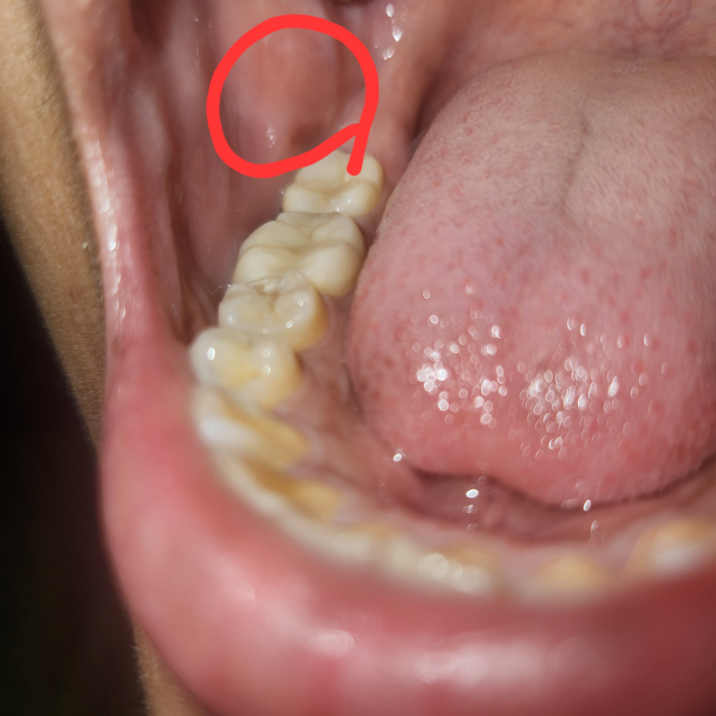 치아 바로 옆쪽이라 볼 안쪽에서 만져보면 통증은 없구요.