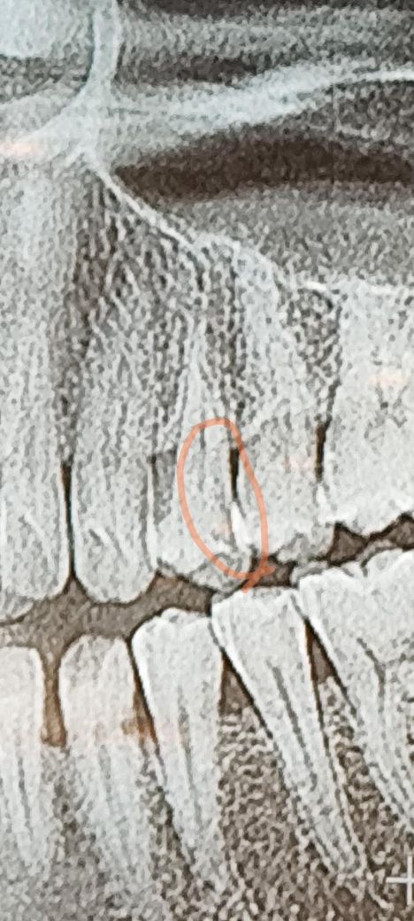 갈아낸 부분은 엑스레이 사진상 동구라미친 부위에