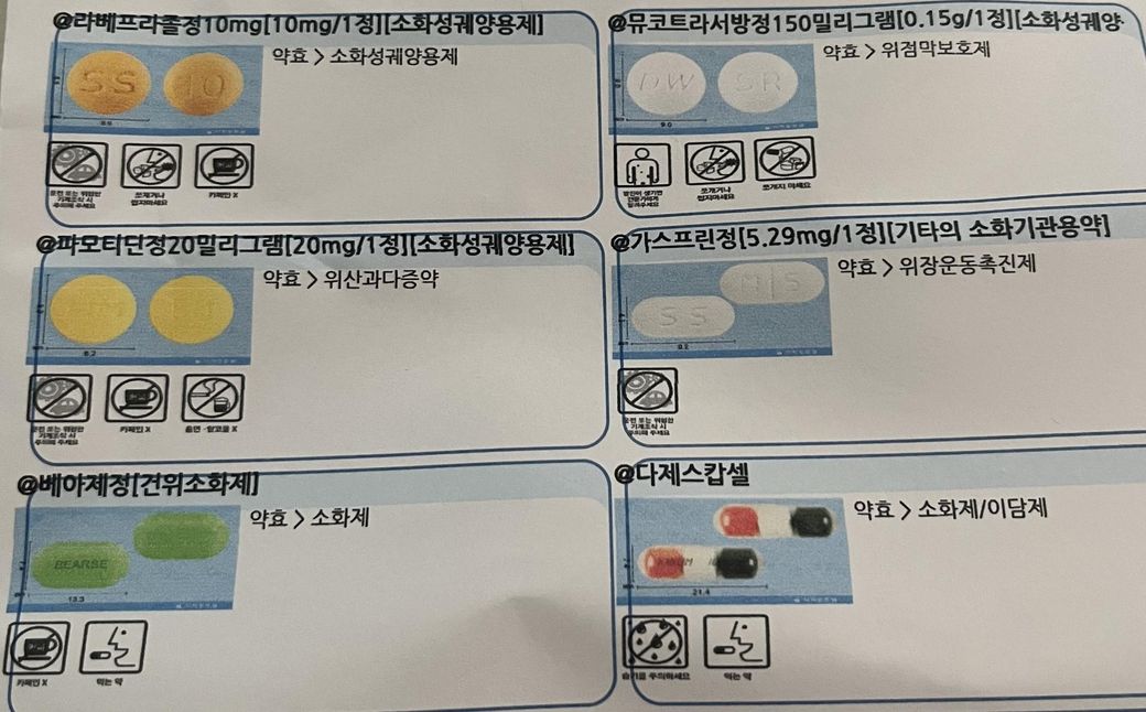 식도 열공 탈장으로 사진의 약을 처방받아 복용 중