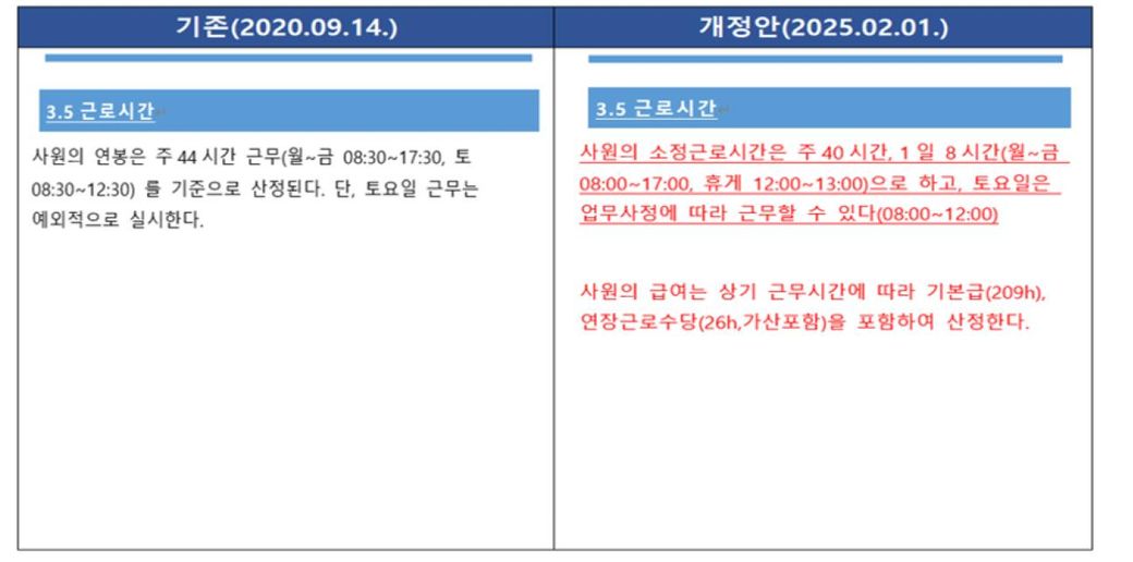 그리고 이에 맞춰 취업규칙을 아래 처럼 개정하겠다고 하는데,