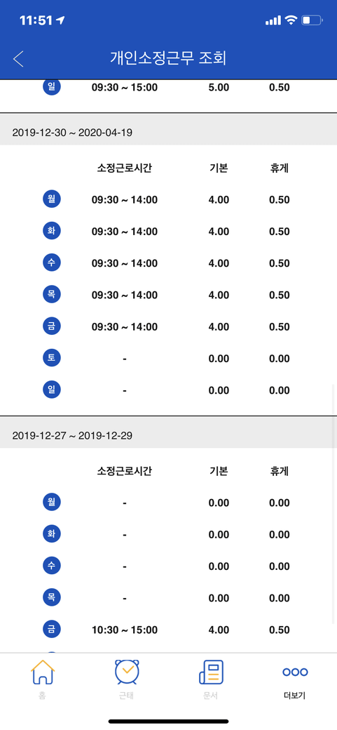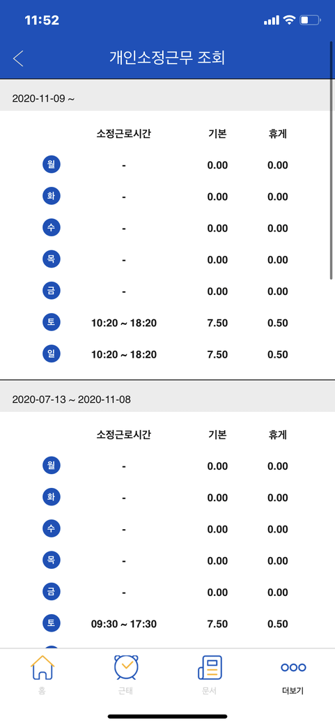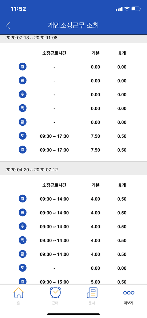 실제 근로시간 기준이 아닙니다.(지각 등 반영 안함)