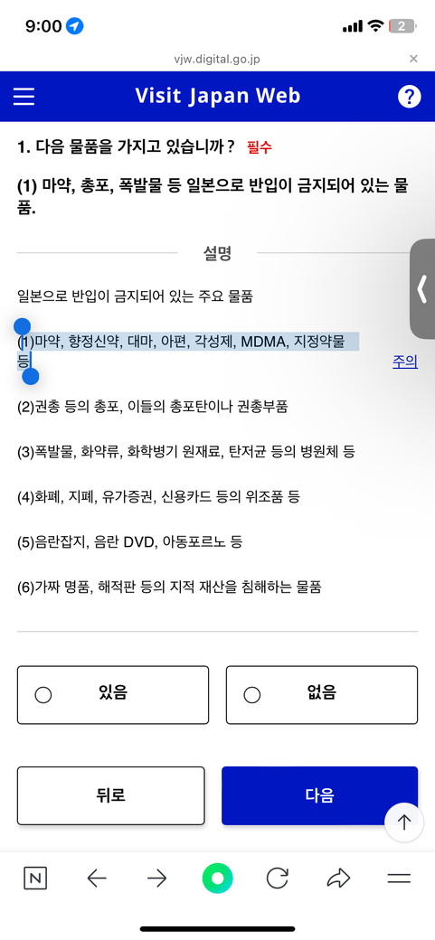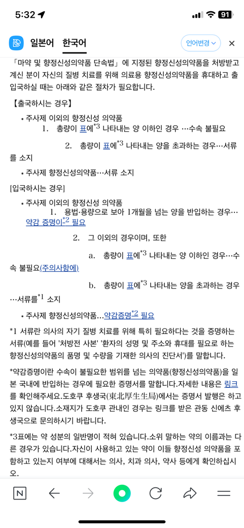 근데 찾아보니 표에 나타내는 양 이하의 경우 수속불필요라고 되어있던데 그럼 세관신고에 향정신약 소지 X라고 체크하면 될까요?